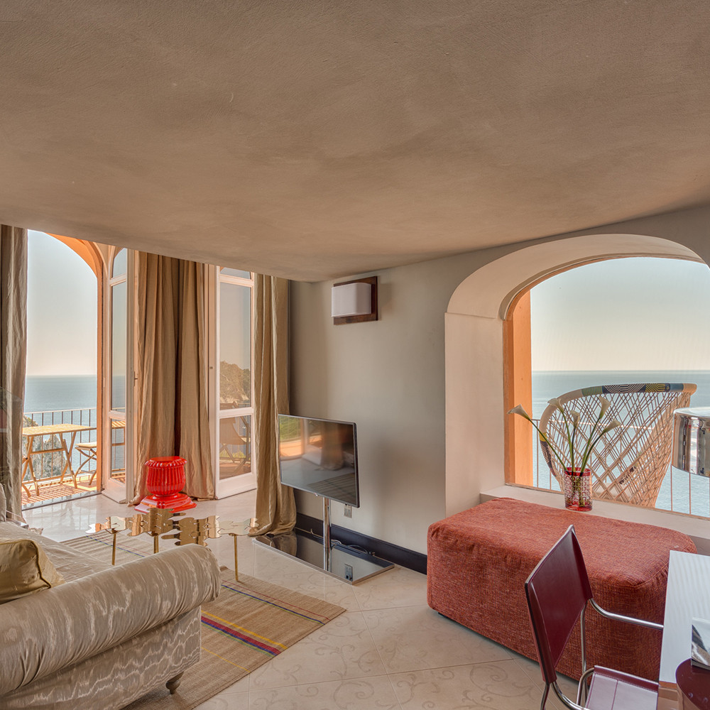 Each room is unique and deepens the idea of well-deserved relaxation after a long journey. Thus those who arrive at Punta Tragara recover in a single sphere all the enchantments of the place, inhabiting it even within the walls of the exclusive building of twentieth-century memory. The ancient soul of the villa marries and flows into the contemporary through a reasoned and eclectic compositional strategy that sees traditional and non-traditional ceramic objects juxtaposed with wall hangings with Mediterranean fantasies. Cultured details that tell different stories and eras.