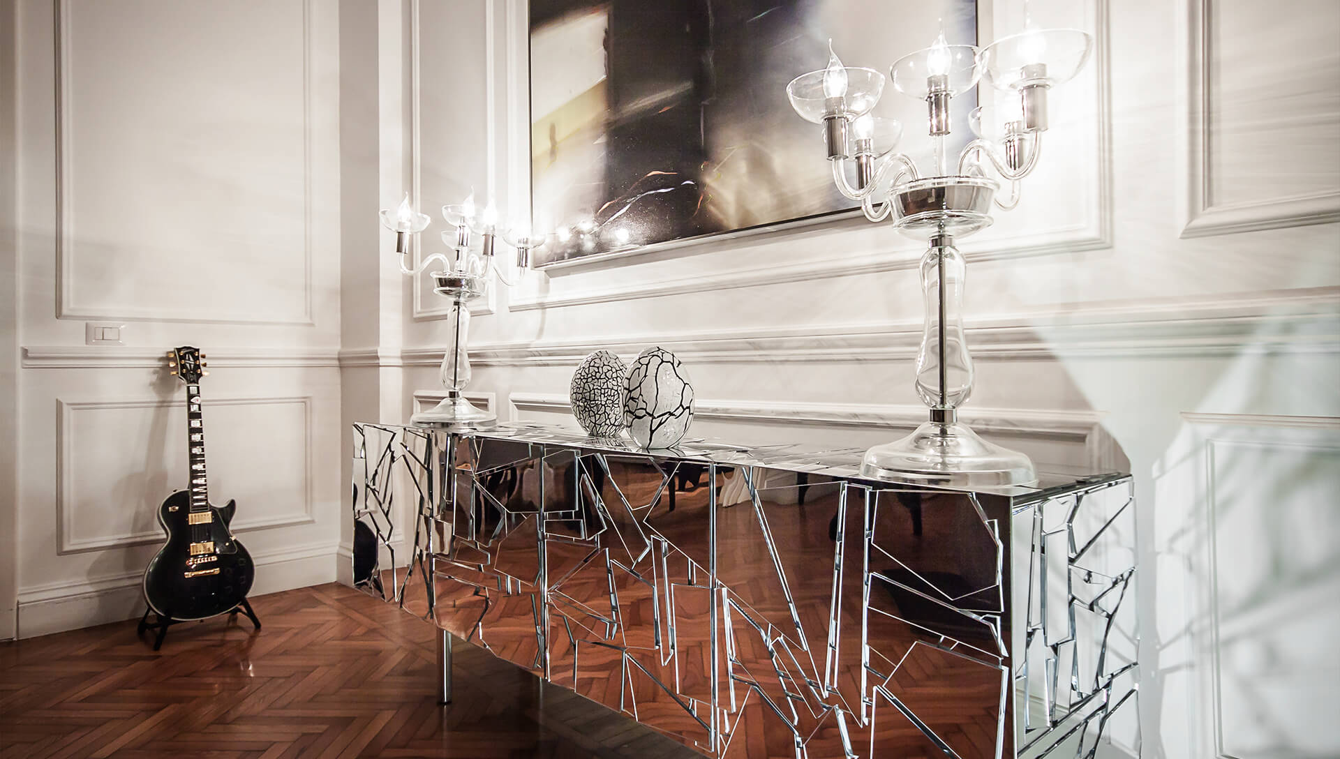 Designer pieces, musical instruments and precious objects have been juxtaposed to create a classic ambient that identifies the owner’s artistic personality.