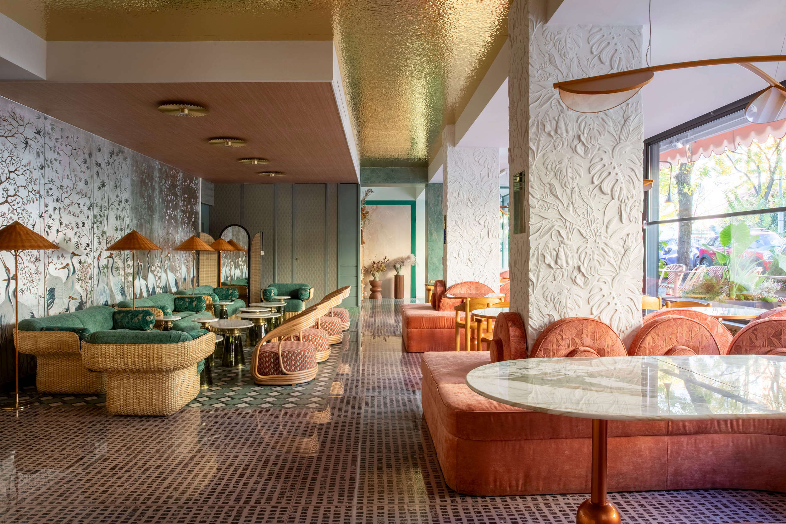 The Appuntamento aims to propose itself as a meeting place. The Architect Dennerlein creates a unique and highly personalized place, inspired by the travels and passions of the owner who imagined it. Colors, suggestions, experiences are condensed into a precious and romantic treasure chest, romantic and cosmopolitan. The vintage, art-deco, tropical, contemporary Parisian-inspired style blends oriental and Nordic accents: the multifaceted soul of the space conquers with its entrancing harmony. The Appuntamento is a restaurant and at the same time a garden, a bistro and a lounge: an atelier of wonder.