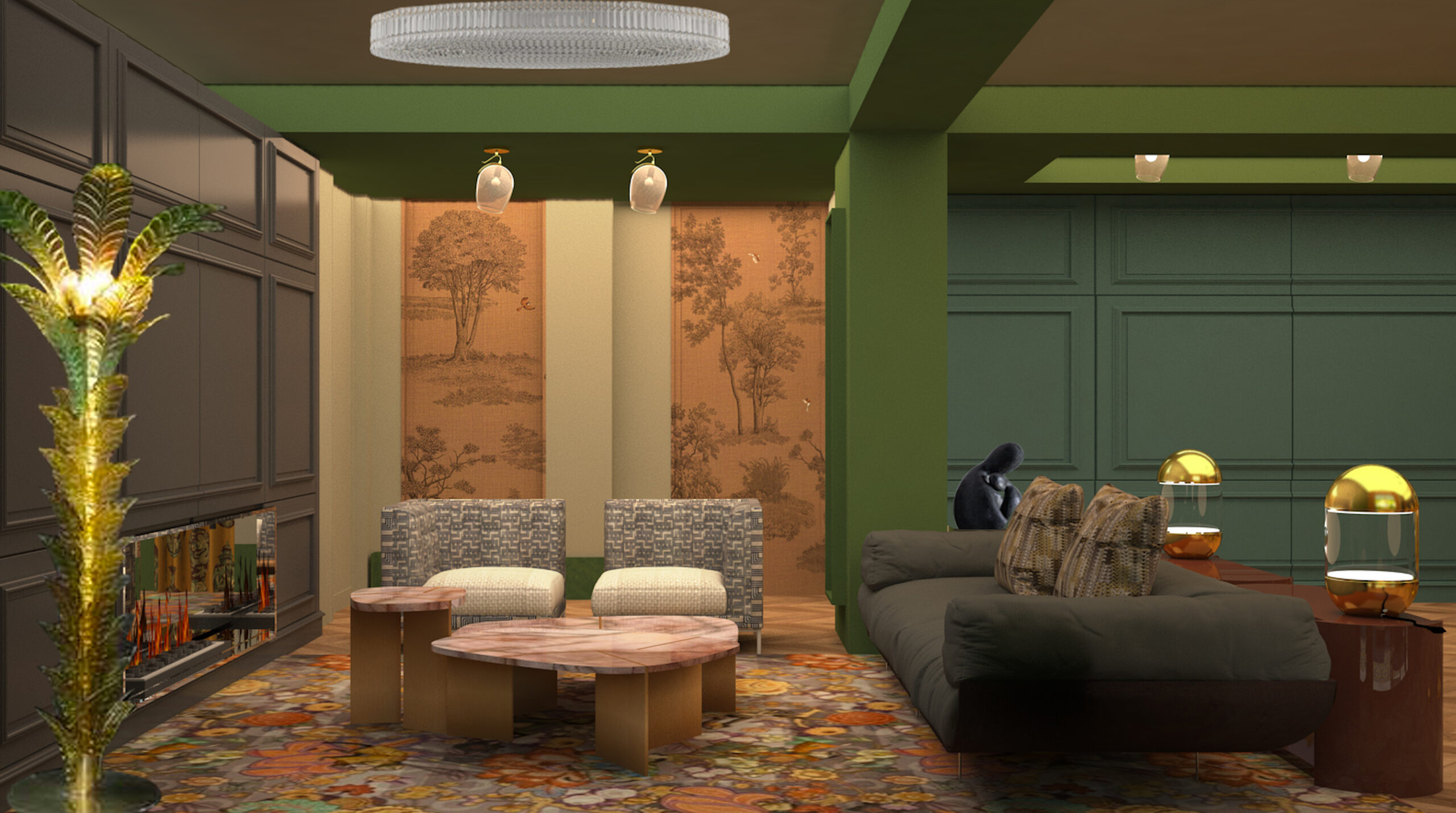 In questo progetto di interior, le tonalità del verde si alternano per vestire gli spazi di un appartamento dallo stile eclettico che si apre verso una vista privilegiata sullo Ionio.