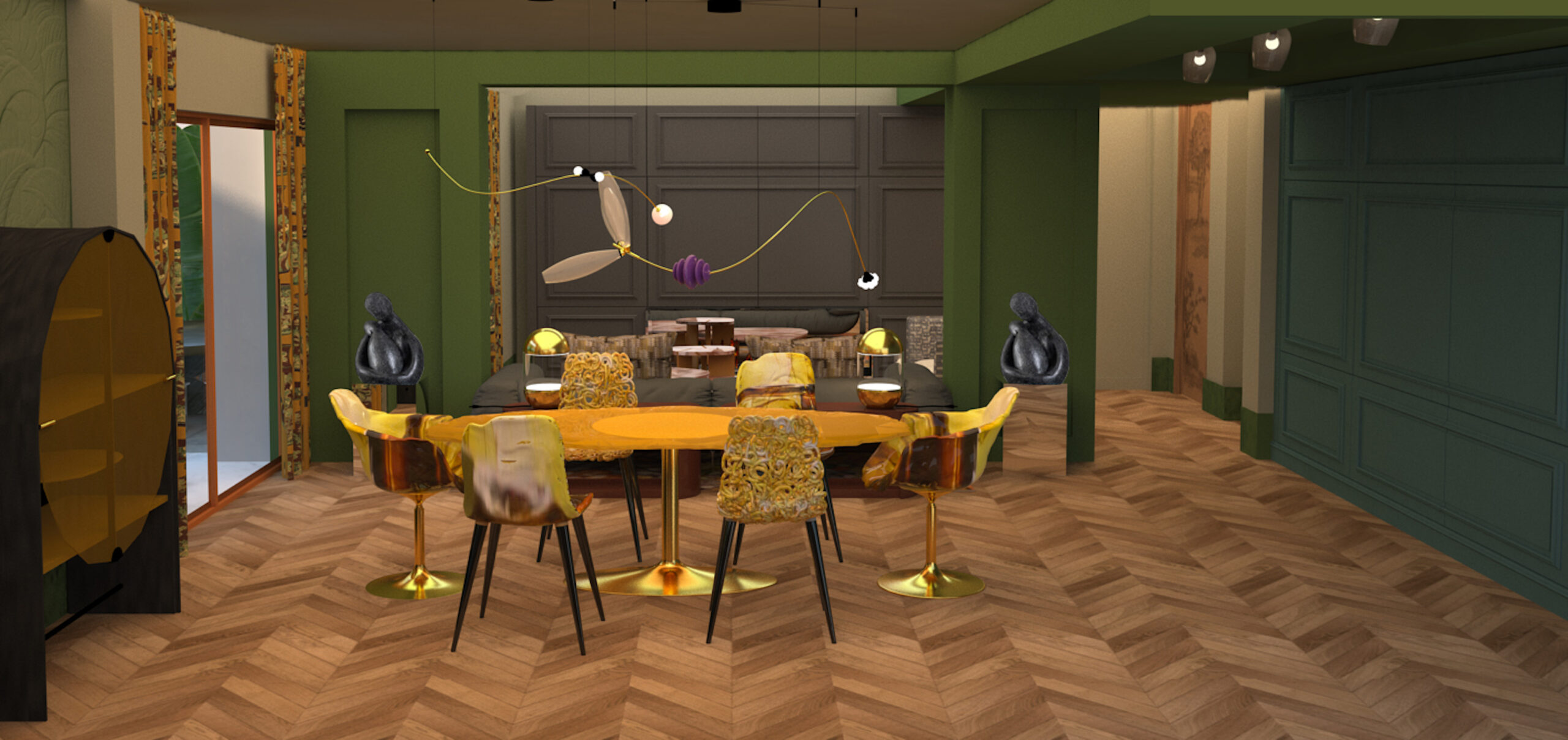 In questo progetto di interior, le tonalità del verde si alternano per vestire gli spazi di un appartamento dallo stile eclettico che si apre verso una vista privilegiata sullo Ionio.